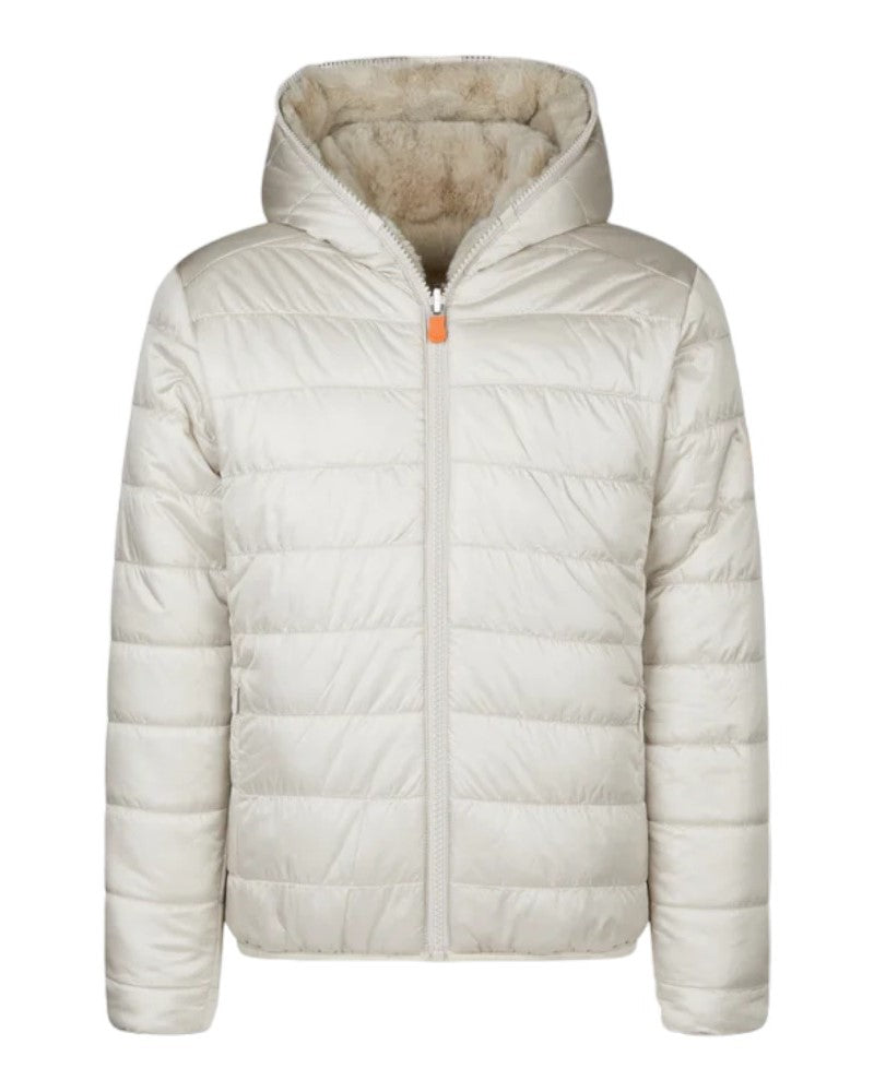 Giubbotto beige chiaro reversibile Save The Duck Kid con cappuccio A/I 2025-2026