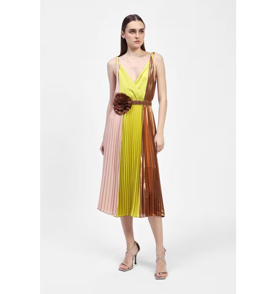 Abito Plissettato Lucido Multicolor Con Maxi Fiore DIXIE