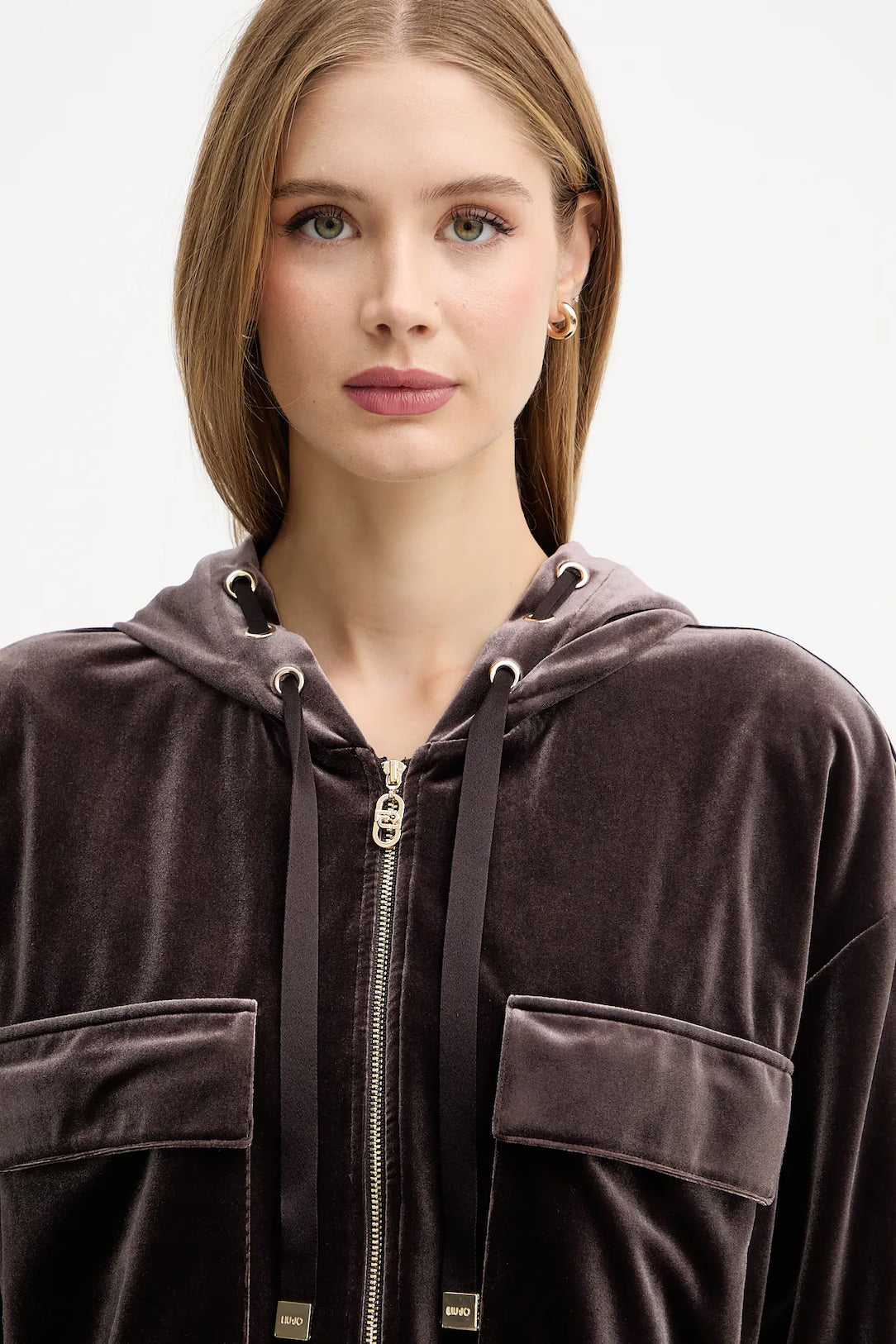 Liu Jo A/I 2025-2026 felpa in velluto con cappuccio