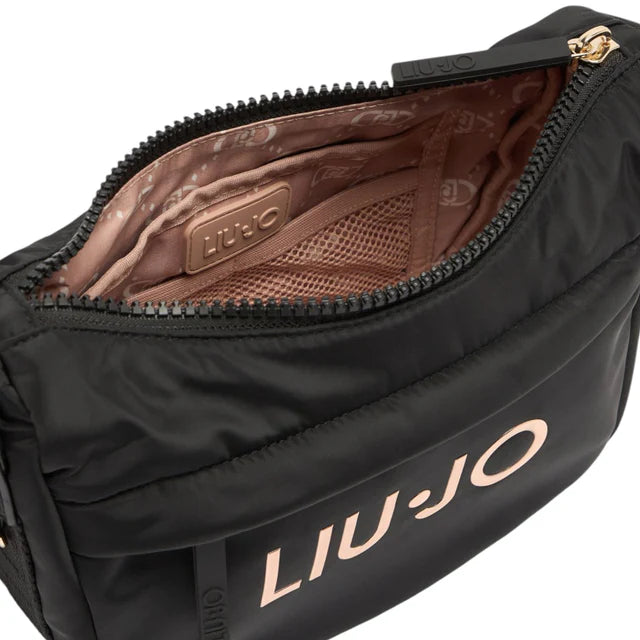 LIU JO Borsa donna in nylon nera con maxi logo LIU JO A/I 2025-2026