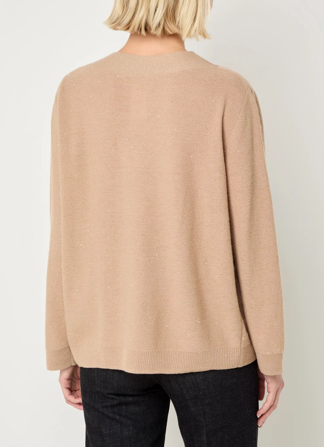 Scopri il maglione Macchia, un capo divertente e scintillante che trasforma la maglia fine in un vero spettacolo. Realizzato in morbido misto lana, è arricchito da paillettes che catturano la luce ad ogni movimento, perfetto per dare un tocco di allegria e originalità al tuo guardaroba autunnale e invernale. Indossalo per sorridere insieme al freddo!