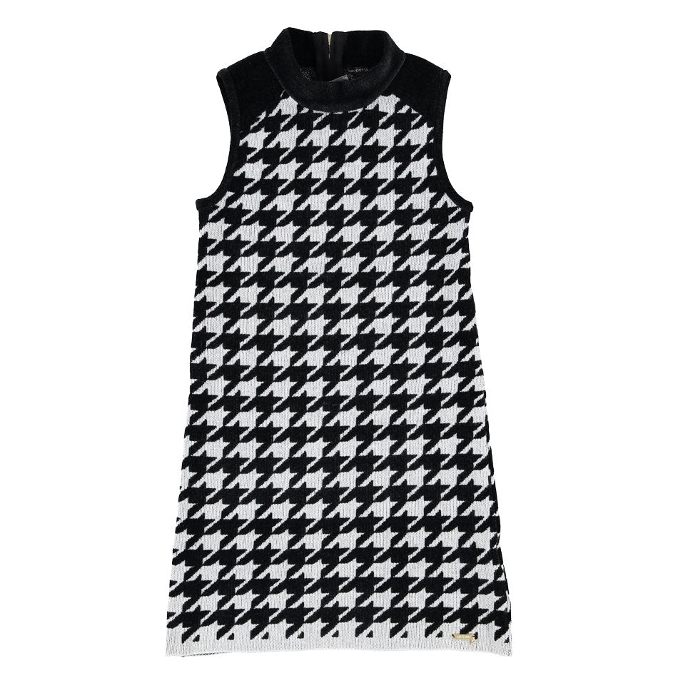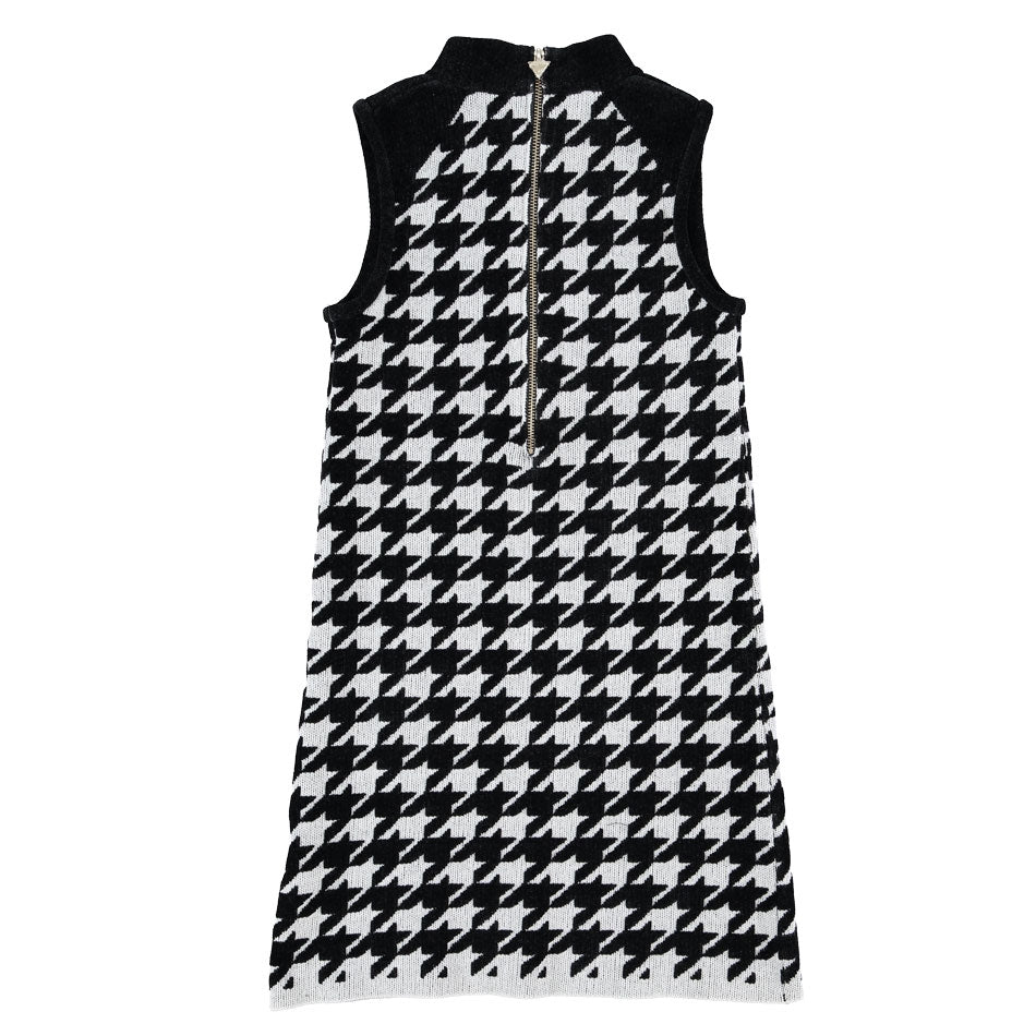 Vestito ragazza Guess, in tessuto maglia e ciniglia, fantasia rilievo, giromanica, modello collo alto con zip dietro.