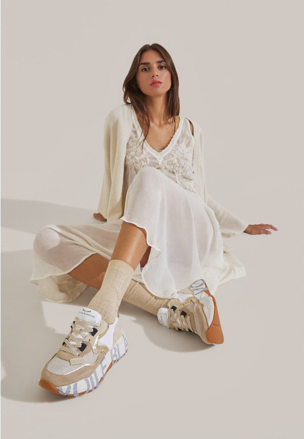 Queste sneaker CLUB105 A/I 2025-2026 uniscono tessuto tecnico e suede con impunture a contrasto, arricchite da dettagli dorati che danno un tocco chic e divertente. La suola a doppia altezza con stampa serigrafica laterale aggiunge carattere e originalità a ogni passo. Perfette per chi ama distinguersi con stile e un pizzico di allegria!