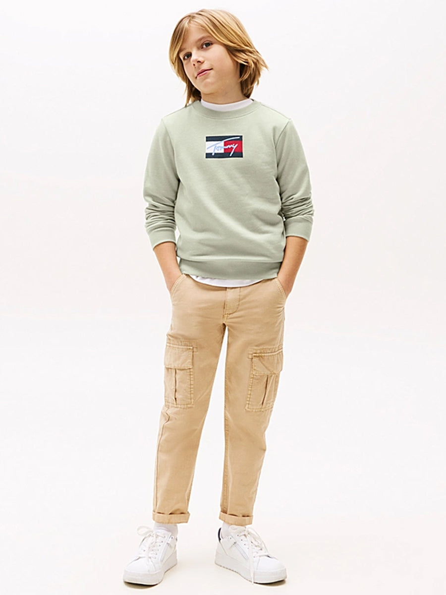La felpa con logo Tommy Hilfiger Signature unisce stile e comfort in ogni occasione. Realizzata in una morbida miscela di cotone, garantisce una vestibilità regolare e un comfort duraturo. Il design presenta un girocollo con collo, polsini e orlo a coste per una finitura curata. Dettagli esclusivi come il nastro con firma sulla nuca, la scritta Tommy Hilfiger sul petto e il ricamo della bandiera sulla manica sottolineano l’autenticità del marchio. Ideale per chi cerca un capo essenziale e distintivo per il guardaroba quotidiano.
