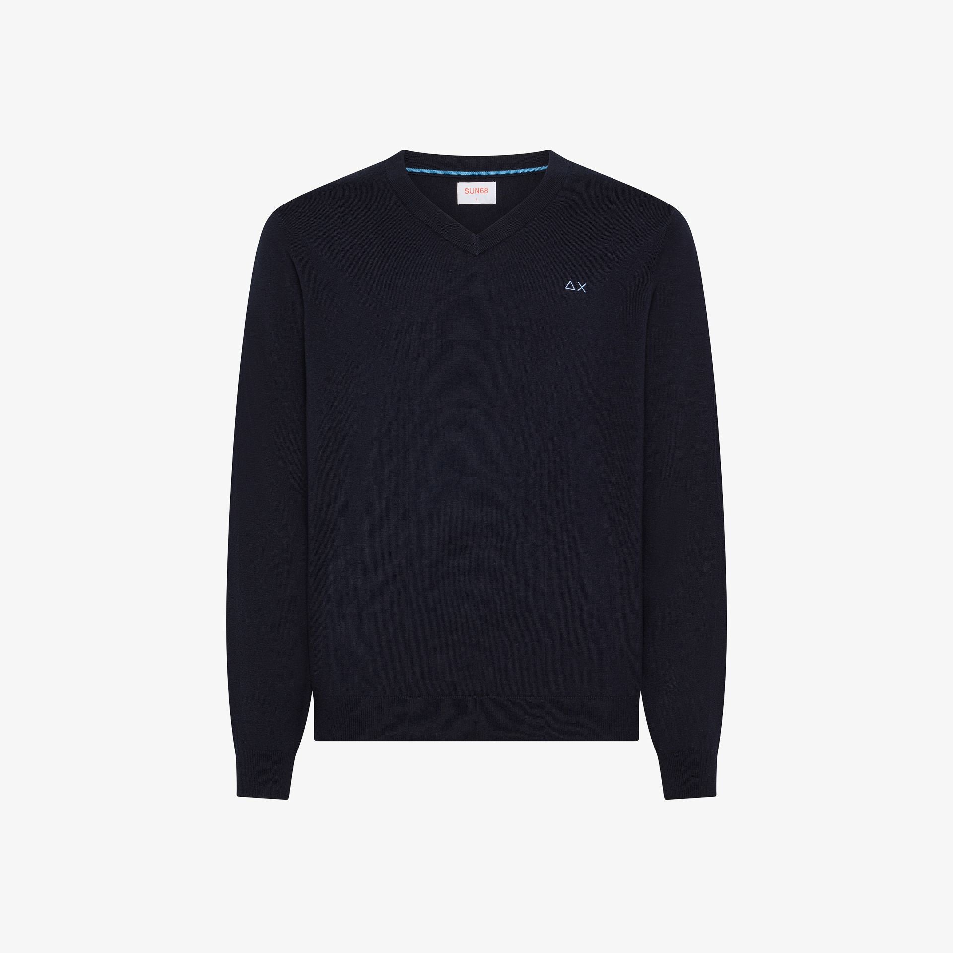 Maglia in lana e cotone con scollo a V navy blue SUN68 A/I 2025-2026