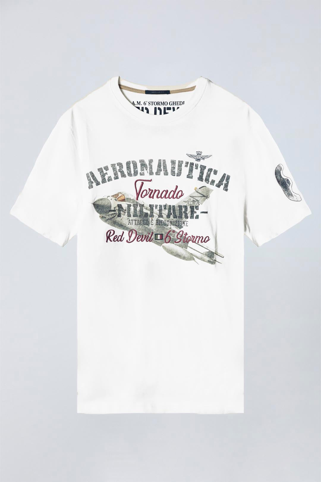 Questa t-shirt in jersey è impreziosita da una spettacolare stampa ad acqua che raffigura il caccia multiruolo "Panavia Tornado", in dotazione ai Diavoli Rossi del 6° Stormo. Un tributo visivo alla dedizione e professionalità di questo prestigioso reparto da interdizione dell'Aeronautica Militare, che ne esalta il valore con un design dinamico e d'impatto.