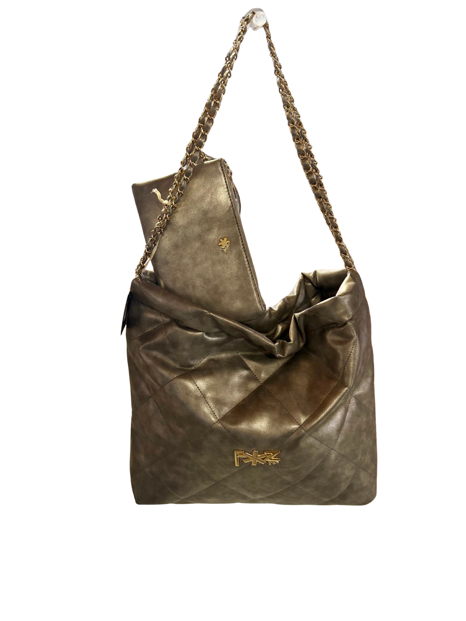 Questa borsa Fez color oro grezzo è l'accessorio perfetto per illuminare i tuoi look autunnali e invernali 2025-2026. Con la sua catena elegante, aggiunge un tocco di brillantezza e stile unico ad ogni outfit, rendendoti la regina della stagione con un pizzico di divertimento e raffinatezza.