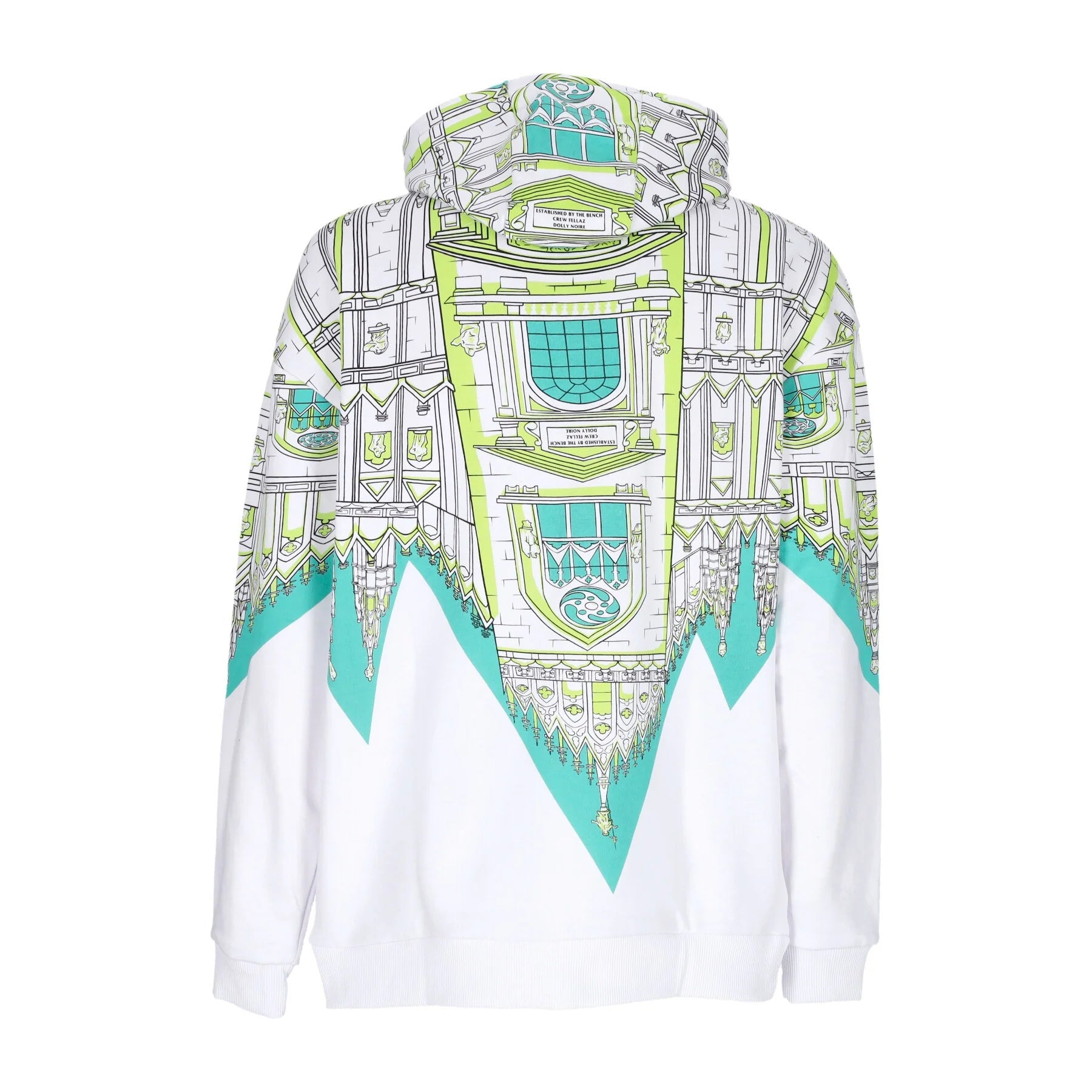 Felpa leggera che unisce stile urbano e comfort senza compromessi. Realizzata in cotone-poliestere (85%-15%), vanta una vestibilità oversize che abbraccia il tuo stile casual. Il cappuccio regolabile con coulisse e le tasche laterali aggiungono praticità, mentre la stampa rovesciata del Duomo di Milano crea un effetto visivo unico e affascinante. Dettagli esclusivi: logo Dolly Noire su etichetta bench cucita e logo Bench in metallo sulla coulisse. Perfetta per chi ama il design italiano con un tocco di ironia. Lavabile a mano o in lavatrice.