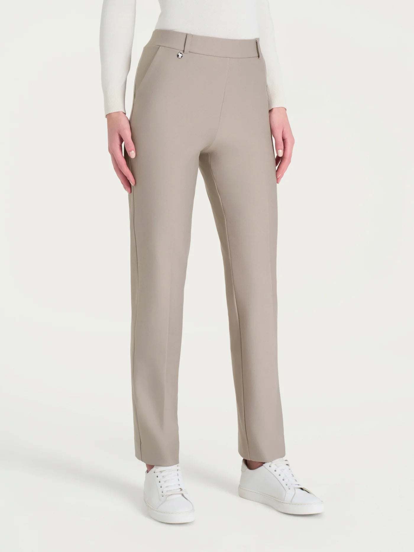 Pantalone dritto che unisce comfort e eleganza senza compromessi. La vita elasticizzata ti avvolge dolcemente, mentre i passanti per la cintura ti permettono di personalizzare il look con accessori che rispecchiano il tuo stile. Le tasche laterali alla francese sono pratiche e raffinate, perfette per chi non vuole rinunciare a nulla. La linea regolare cade dritta dal fianco alla caviglia, creando una silhouette slanciata che valorizza ogni fisicità senza segnare. Un classico versatile che diventa il tuo alleato preferito per ogni occasione.