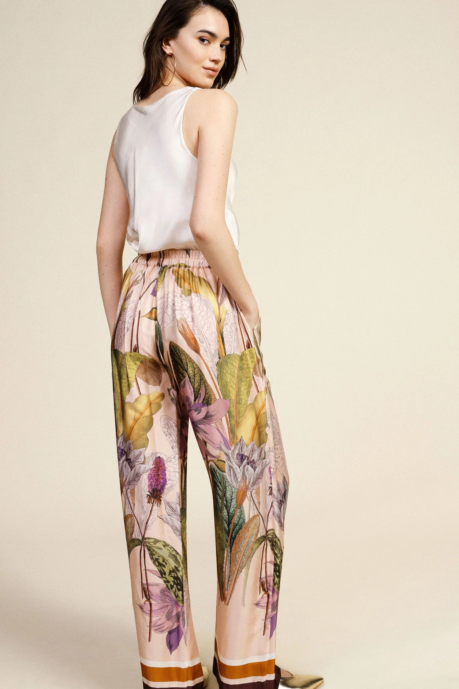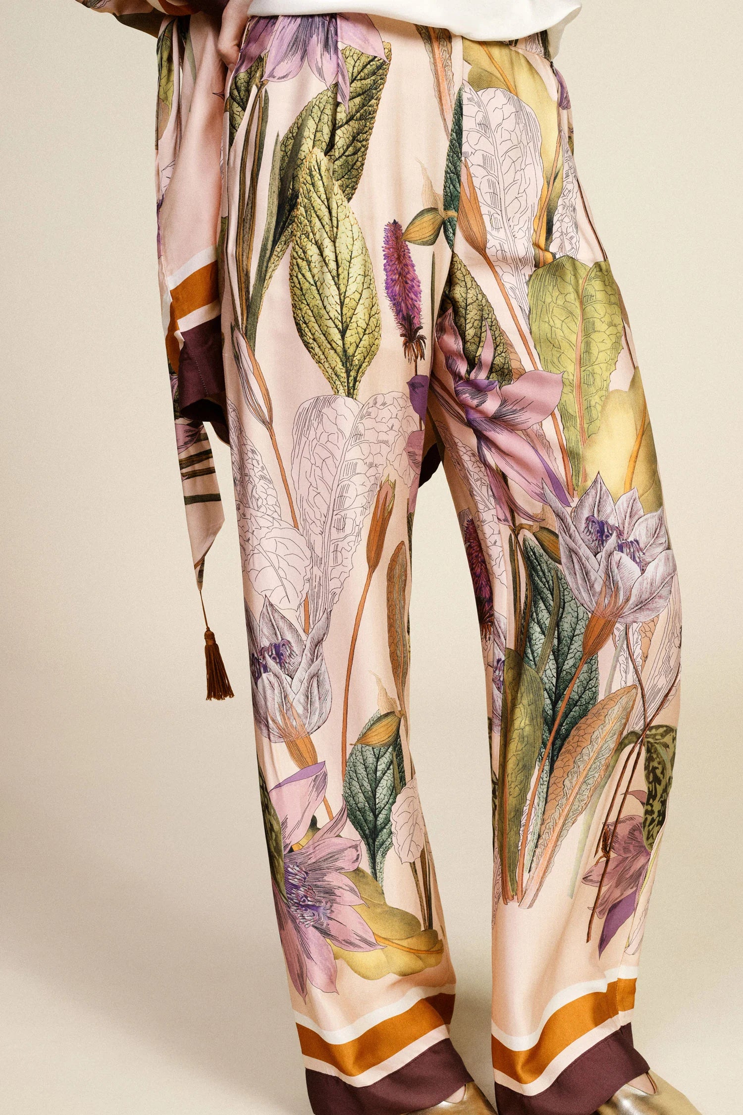 Pantaloni palazzo fantasia botanica vita alta DIXIE PE26