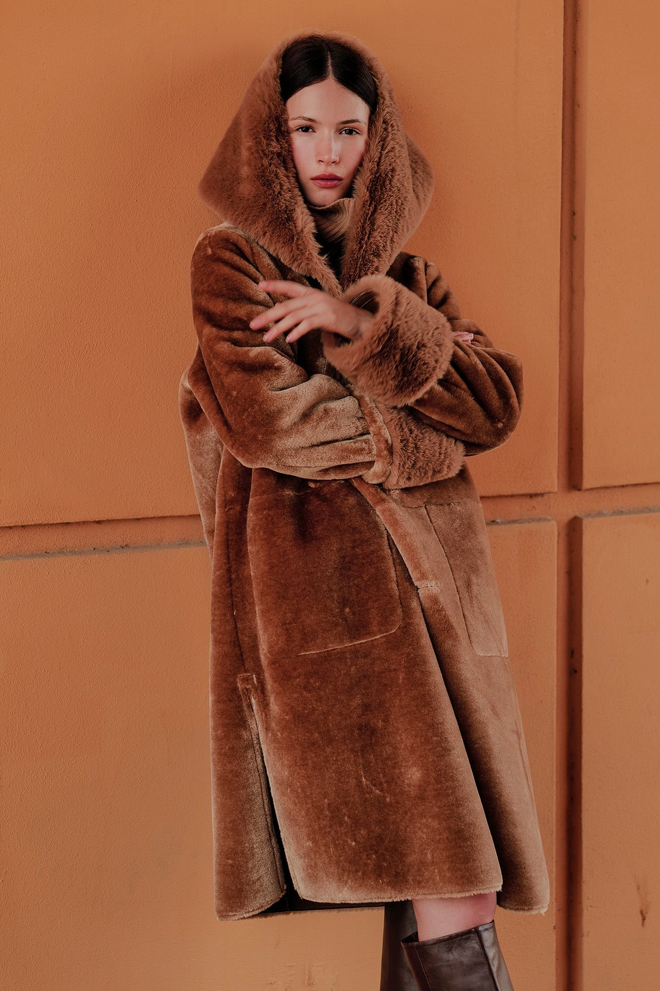 Scopri il nostro parka reversibile che trasforma il tuo stile in un istante! Realizzato in eco montone nappato all'esterno per un look sofisticato e resistente, si rivela all'interno con un morbidissimo eco pelo tipo orsetto che avvolge come un abbraccio. Perfetto per chi ama giocare con la moda senza compromessi: due look in uno, sostenibilità garantita e comfort che non passa inosservato. La collezione A/I 2025-2026 di VLAB ti aspetta!