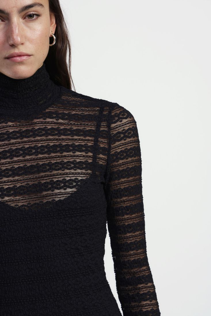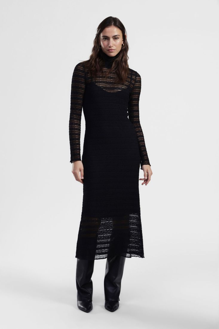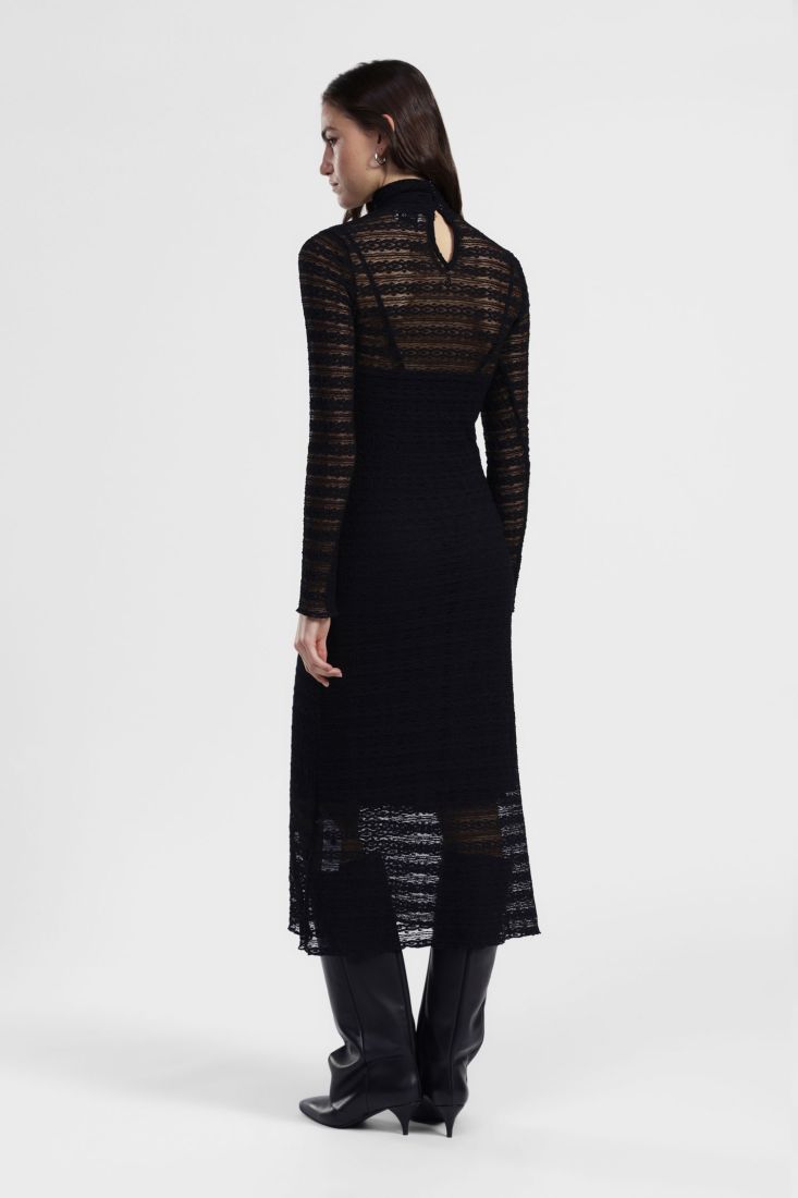 Vestito lungo pizzo a righe con collo alto DIXIE A/I 2025-2026