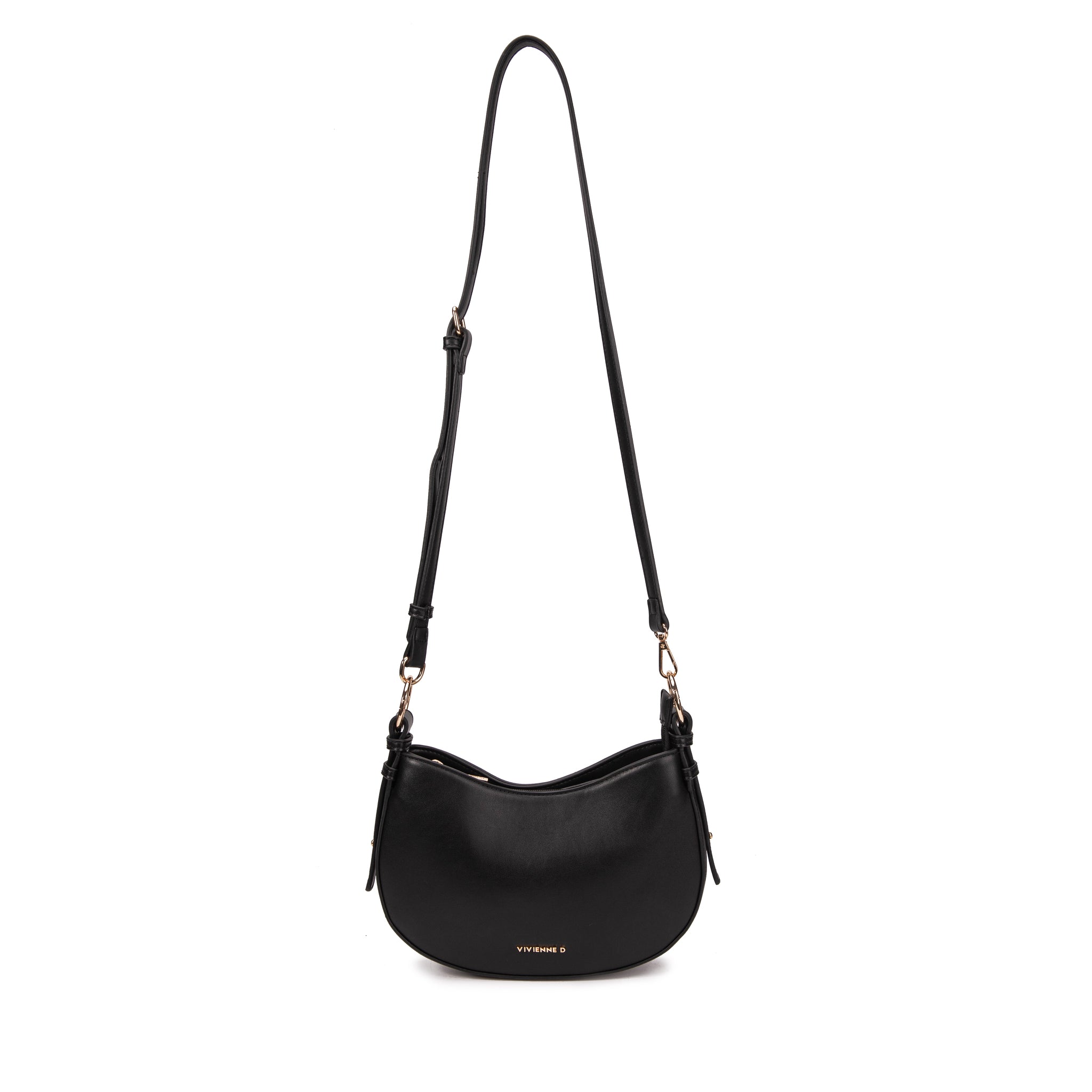 Eleganza in miniatura: la Mini Bag Classy Nero è il compagno perfetto per chi non scende a compromessi. Realizzata in ecopelle liscia, combina praticità e stile con due tasche interne (una con zip per i tuoi segreti), manico singolo e tracolla removibile per versatilità totale. Il logo VIVIENNE D in finitura dorata aggiunge quel tocco di lusso che trasforma ogni outfit. Chiusura con cerniera affidabile e anelli aggiuntivi per sicurezza extra. Piccola ma potente, proprio come piace a noi.